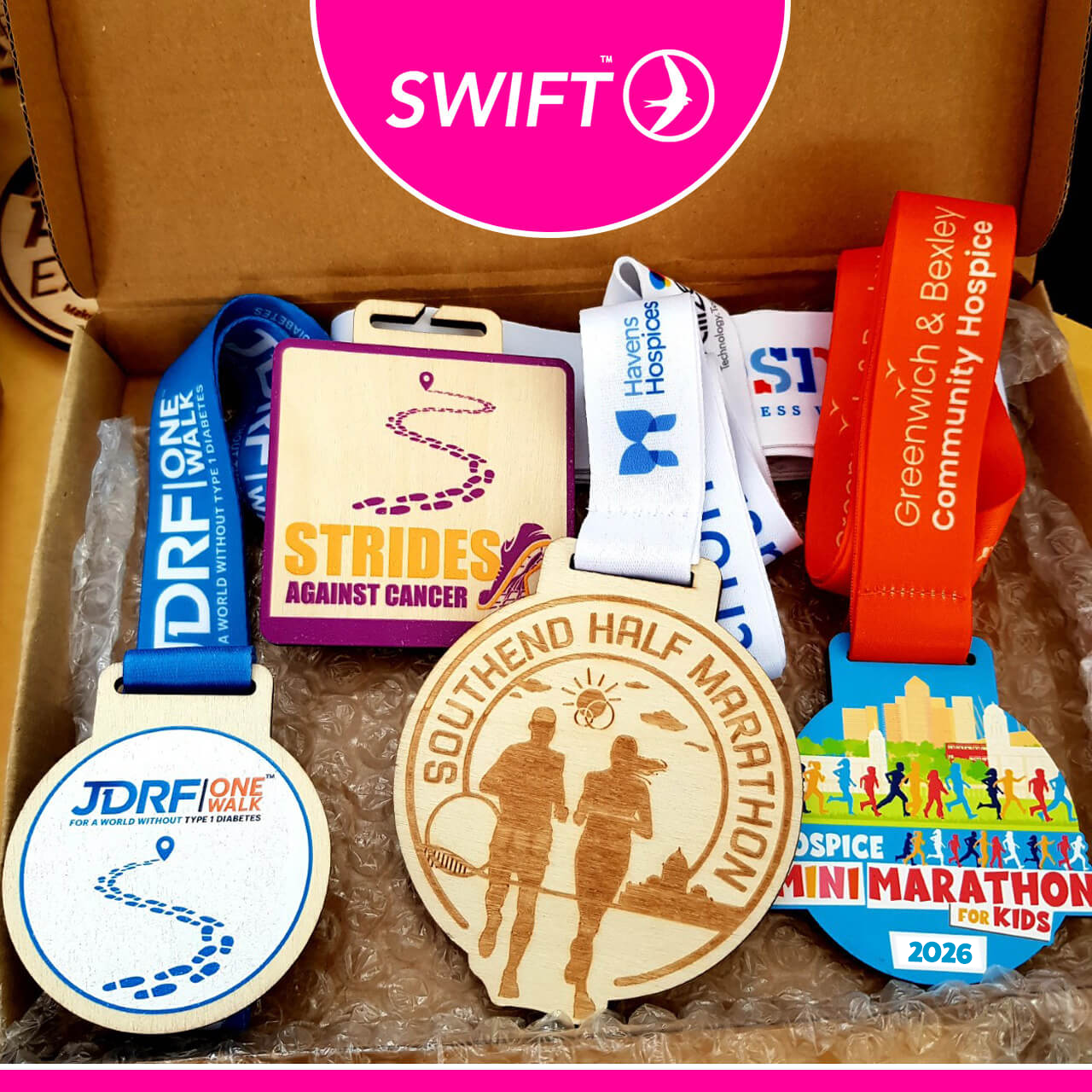 Trusted bespoke medal supplier for race directors, event organisers, sports clubs and charities. Swift Event Supplies is the No.1 choice for bespoke medals and personalised lanyards in the UK.